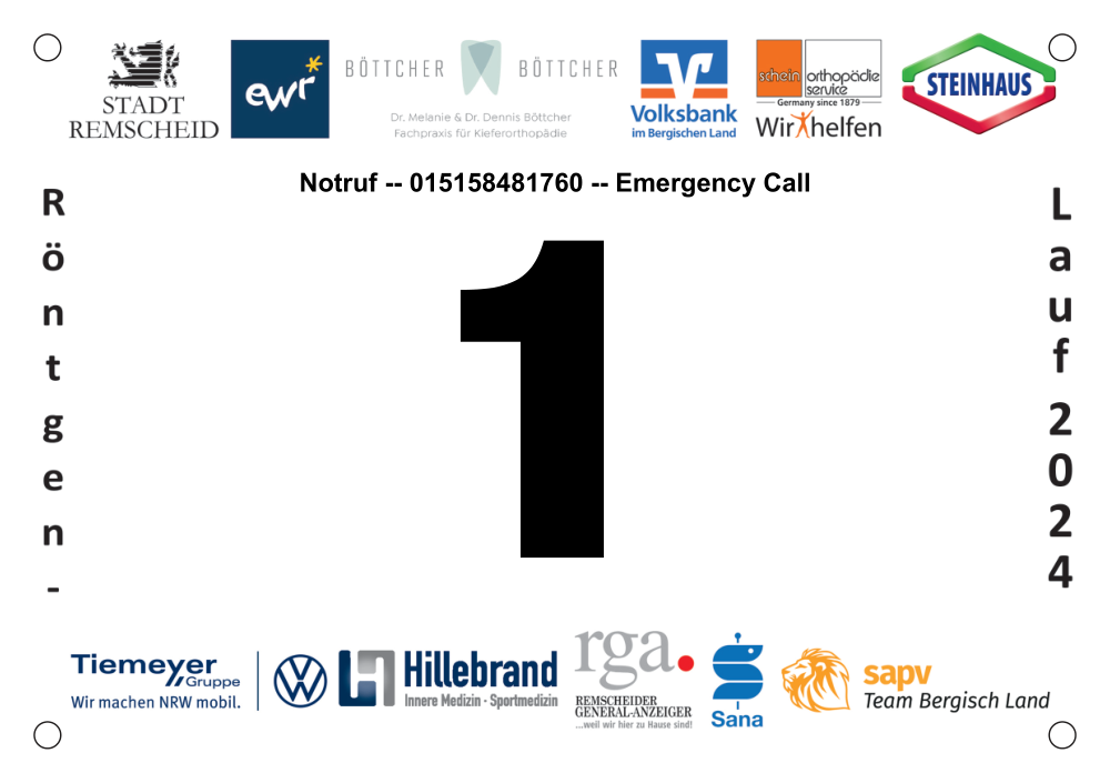Die Startnummer zum Röntgenlauf ist startklar und hat die Notrufnummer dabei!